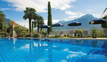 La posizione panoramica con vista sulla città di Merano contraddistingue l'Hotel Marlena, immerso in un bellissimo giardino con oltre 300 varietà di piante.