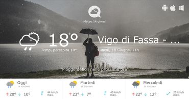 Consulta le previsioni meteo per Vigo di Fassa - Catinaccio fino a 14 giorni grazie a i dati aggiornati del nostro bollettino metereologico: temperature, precipitazioni, umiditá, mari, velocitá del vento...